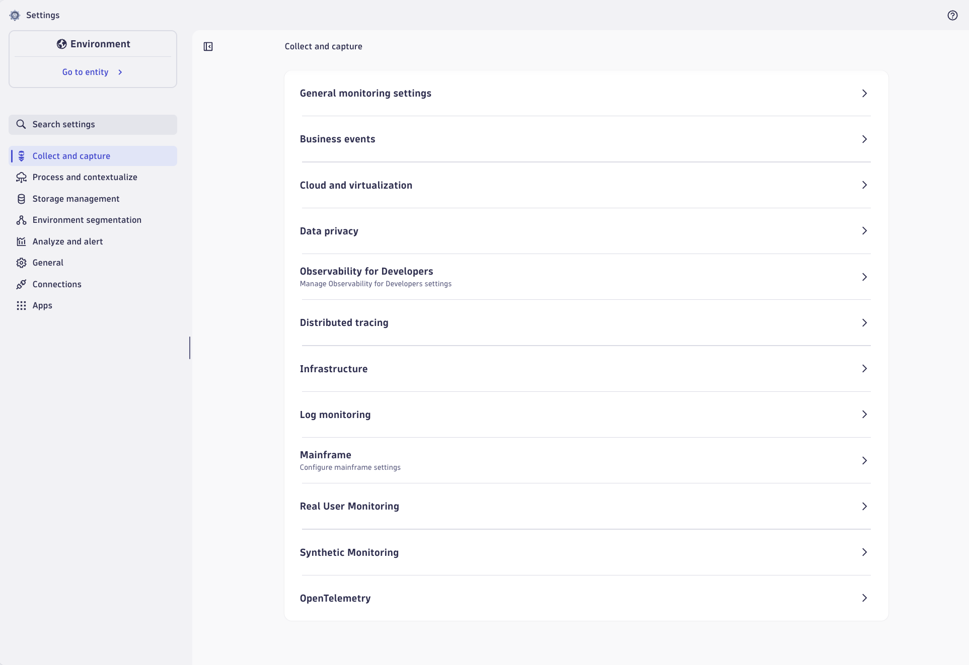 Settings is a preinstalled Dynatrace app that allows you to easily manage all the settings in your environment in a central place.