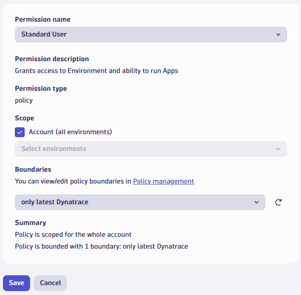 ALLOW app-engine:apps:run;.only latest Dynatrace).Select Save.