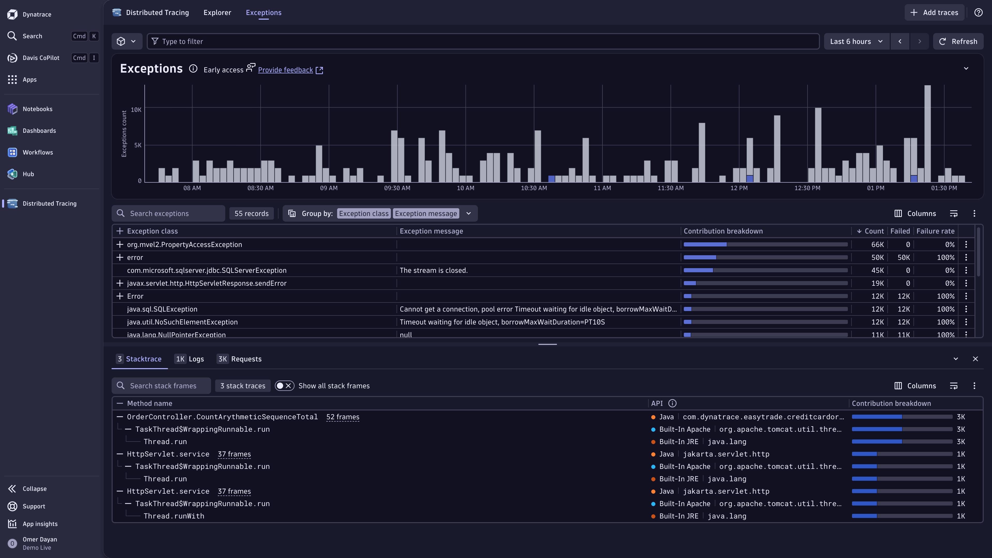- Exception analysis helps you detect, investigate, and resolve exceptions more effectively in Dynatrace.